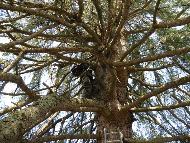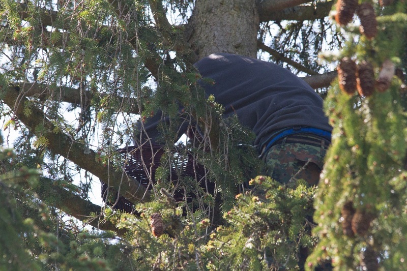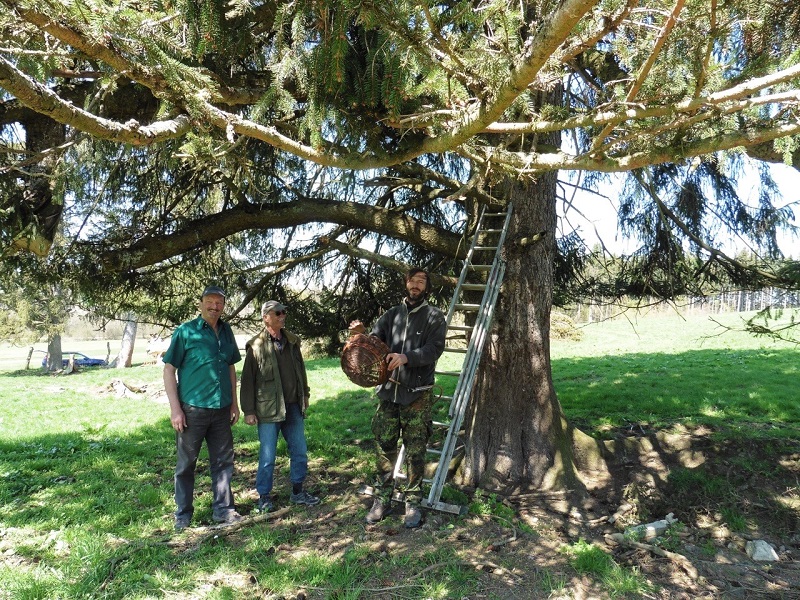 einer Höhe von etwa 16 Metern und konnte die Körbe an den für den Baumfalken gut zu erreichenden Stellen befestigen und mit Nistmaterial befüllen. Nachdem Sebastian sich auch wieder gesund und