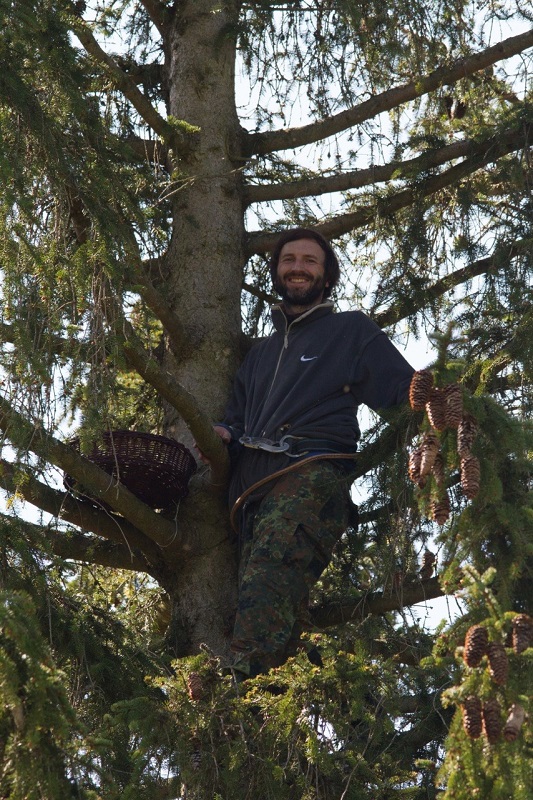 Zinnecker-Wiegand und Ulla Bulla haben Fotos gemacht und Werner Borok hat von unten dirigiert und viele gute Ratschläge gegeben. Sebastian kletterte beherzt und geschickt durchs Geäst bis zu