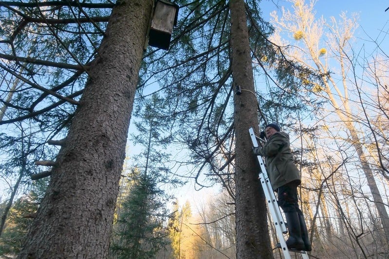 Klaus Gottschaldt besitzt eine Wildkamera und so organisierten Stephan Rauscher und Günther Paschek das Aufhängen der Kamera Anfang 2020, um das Geschehen rund um den Kasten zu