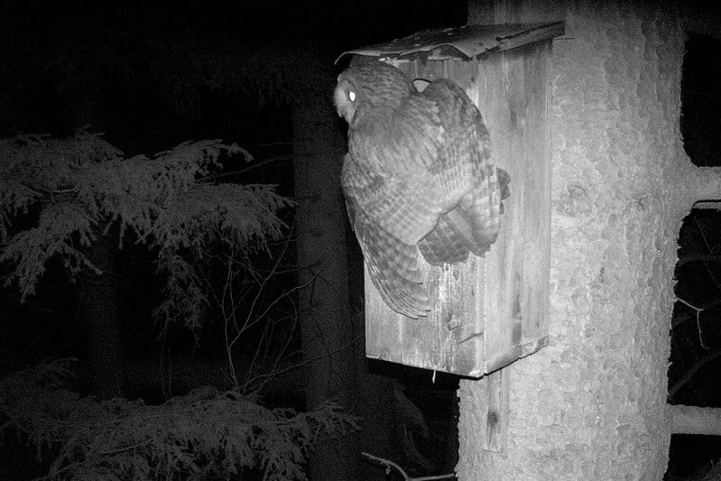 Und im Jahr 2020 wurde, so scheint es, kein Brutversuch unternommen wurde, da nur ein einziger Waldkauz im Gebiet war. Andernfalls hätte man auf den Fotos auch mal zwei Käuze zusammen beobachten