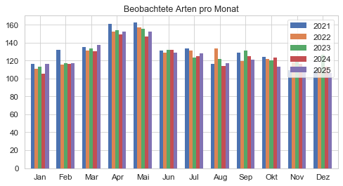 Mai die beobachtungsintensivsten Monate. Im Sommer (Juli/August) wird relativ wenig beobachtet. Mit der beginnenden Zugsaison im September steigen dann auch die Beobachtungszahlen wieder an.