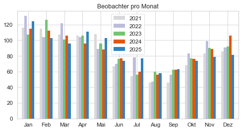 Details über die Beobachtungsdichte im Jahresverlauf der letzten Jahre kann man aus nachfolgender Grafik entnehmen.