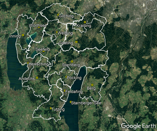 politischen Grenzen gewählt. Dabei zählt der gesamte Starnberger See zum Landkreis Starnberg.