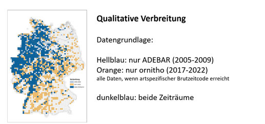 eine deutliche Verbreitungsänderung der Arten. Eine Art (Kolkrabe) ist mittlerweile nahezu überall in Deutschland zuhause, eine Art (Nilgans) breitet sich zusehends nach Osten aus und eine